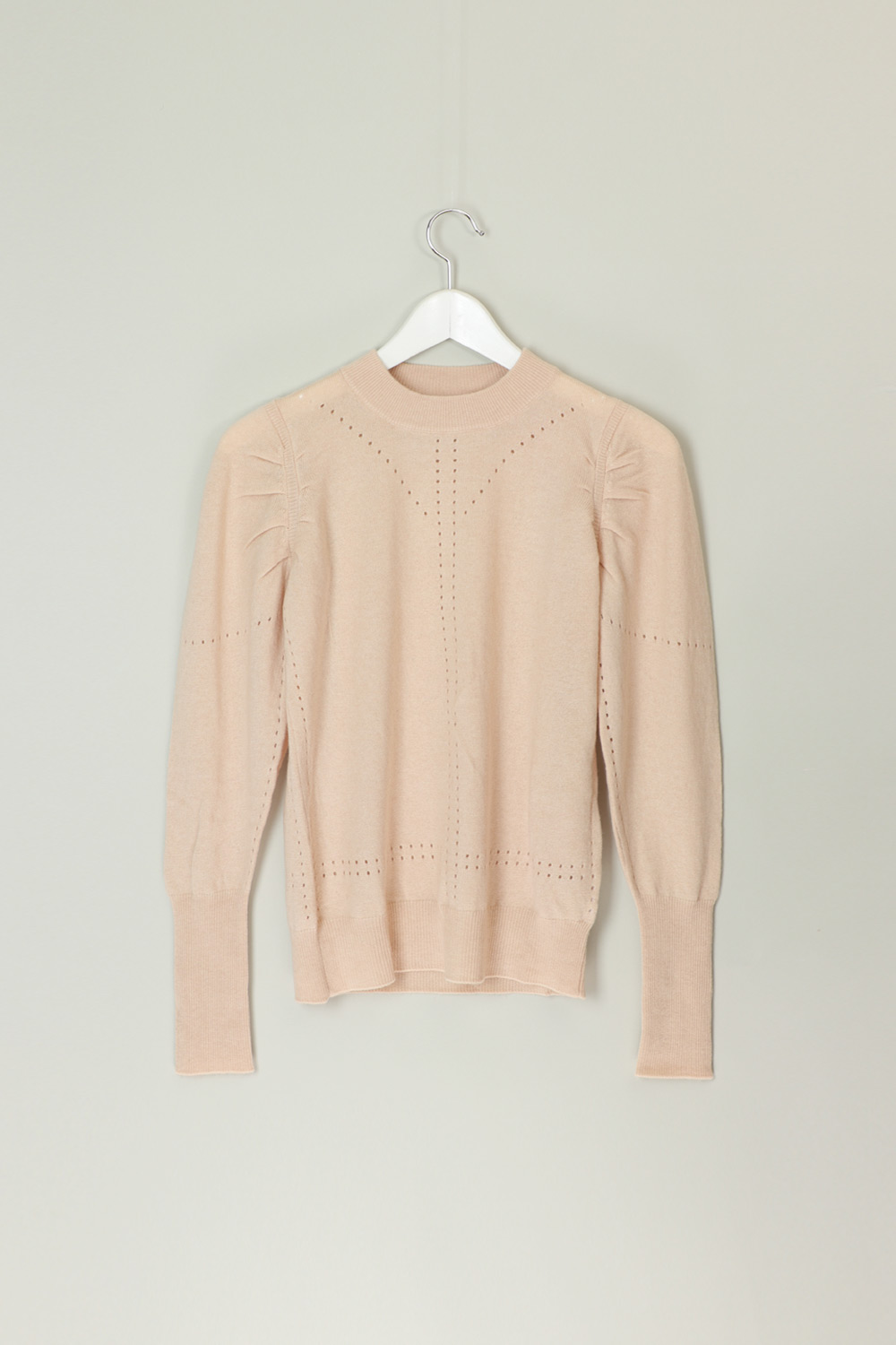An a-t-w-o-o-d signature in wool and cashmere. The Pearl sweater features feminine puff sleeves and refined pointelle detailing. Exclusively stocked at Sky Amsterdam.