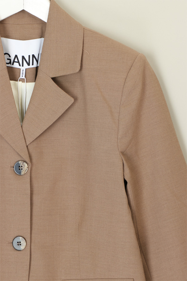 The short Fitted Blazer by Ganni features a collar, button closure and two decorative pockets at the front.