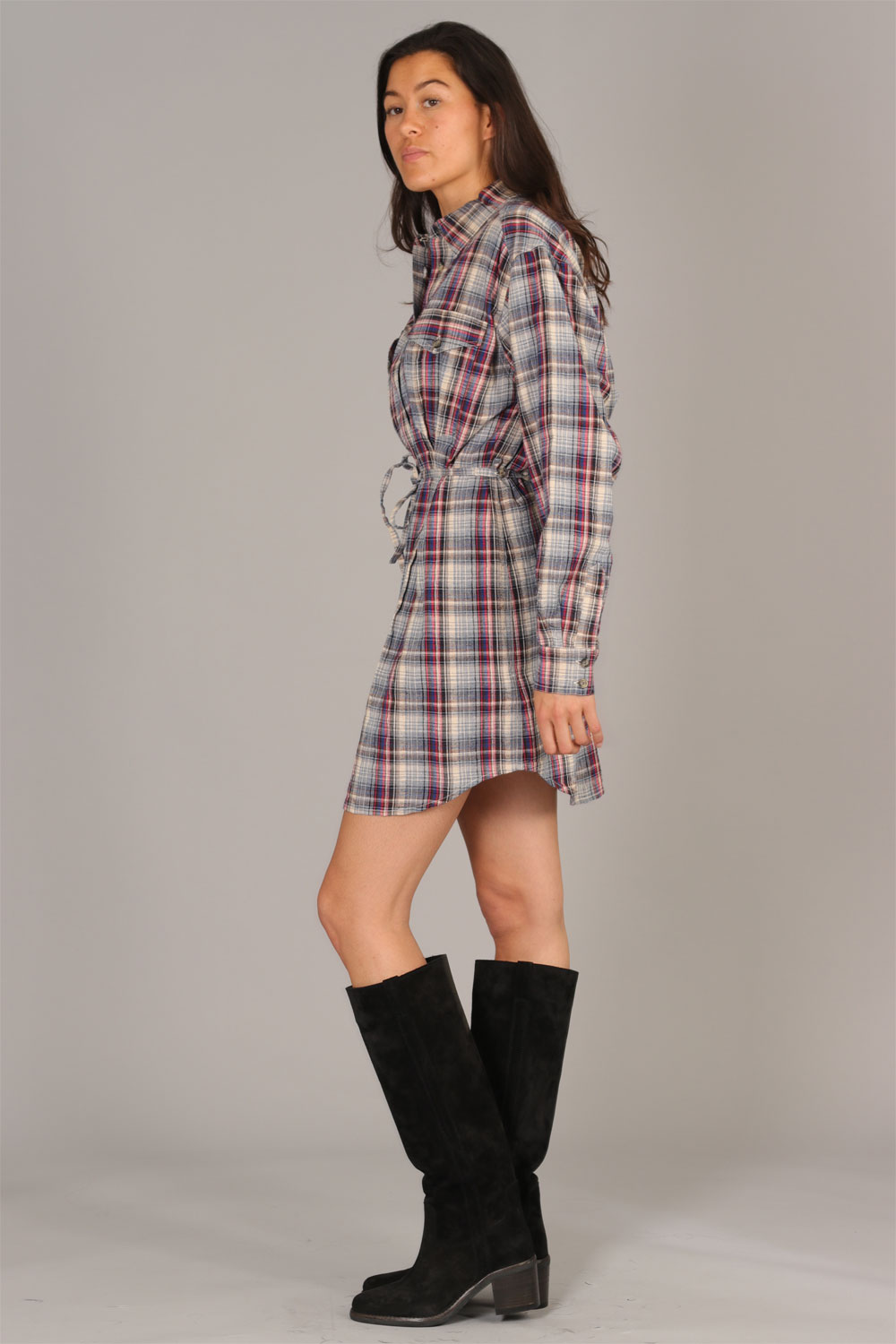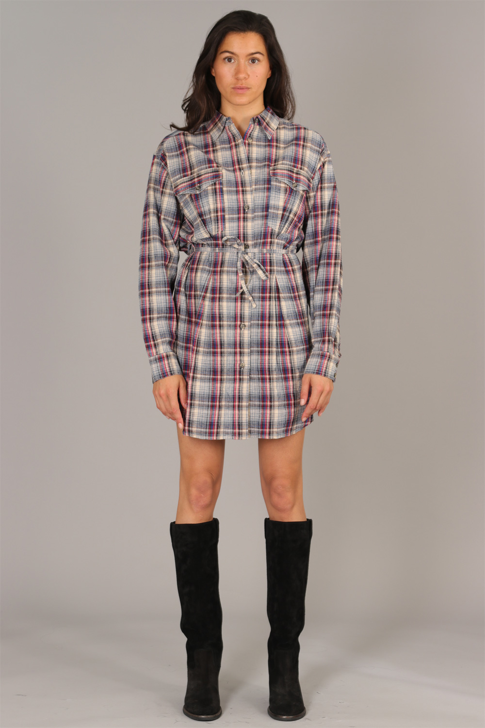 Primed for autumn with a checkered pattern, the Liliane dress from Marant Étoile reminds us of an oversized shirt that cinches with a matching tie.